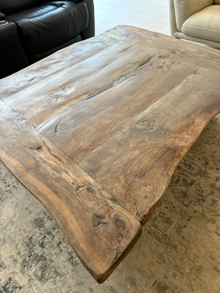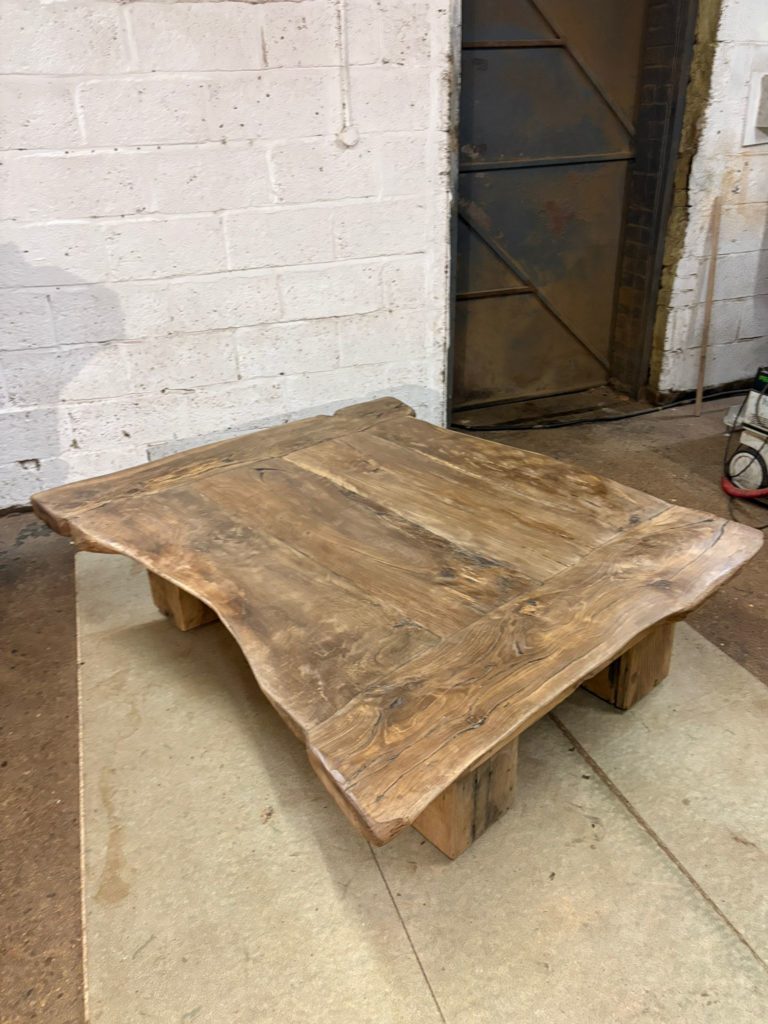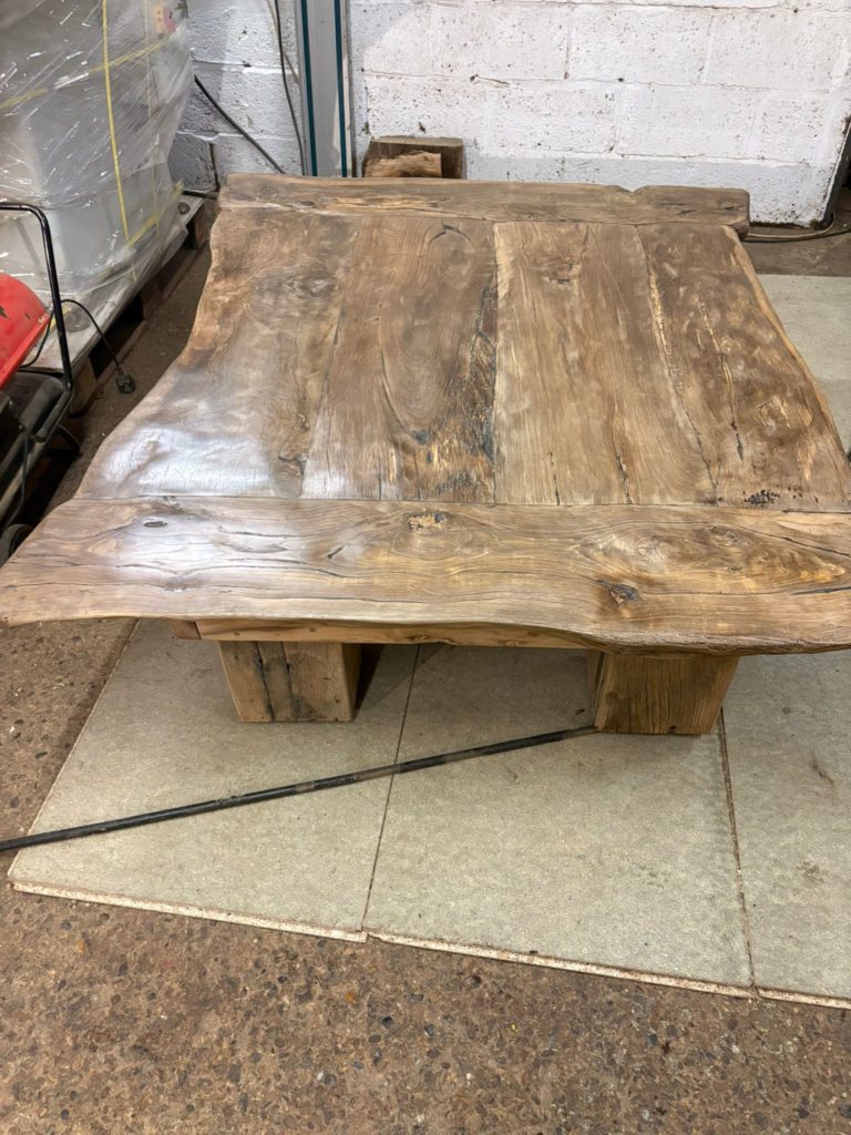This beautiful unique coffee table was made from slabs of oak beams 4ft by 5ft oak sourced from the south of France Pyrenees region.